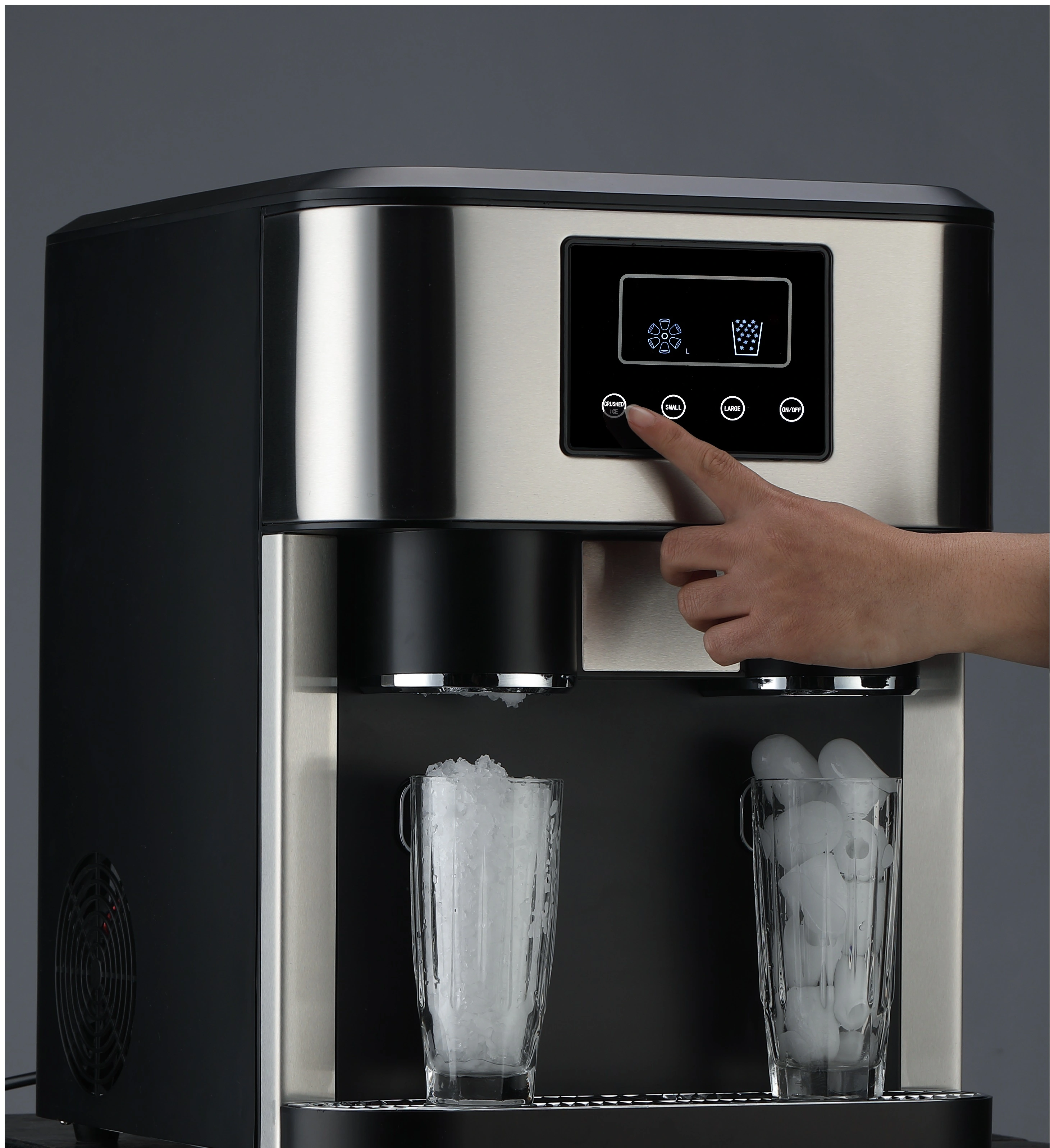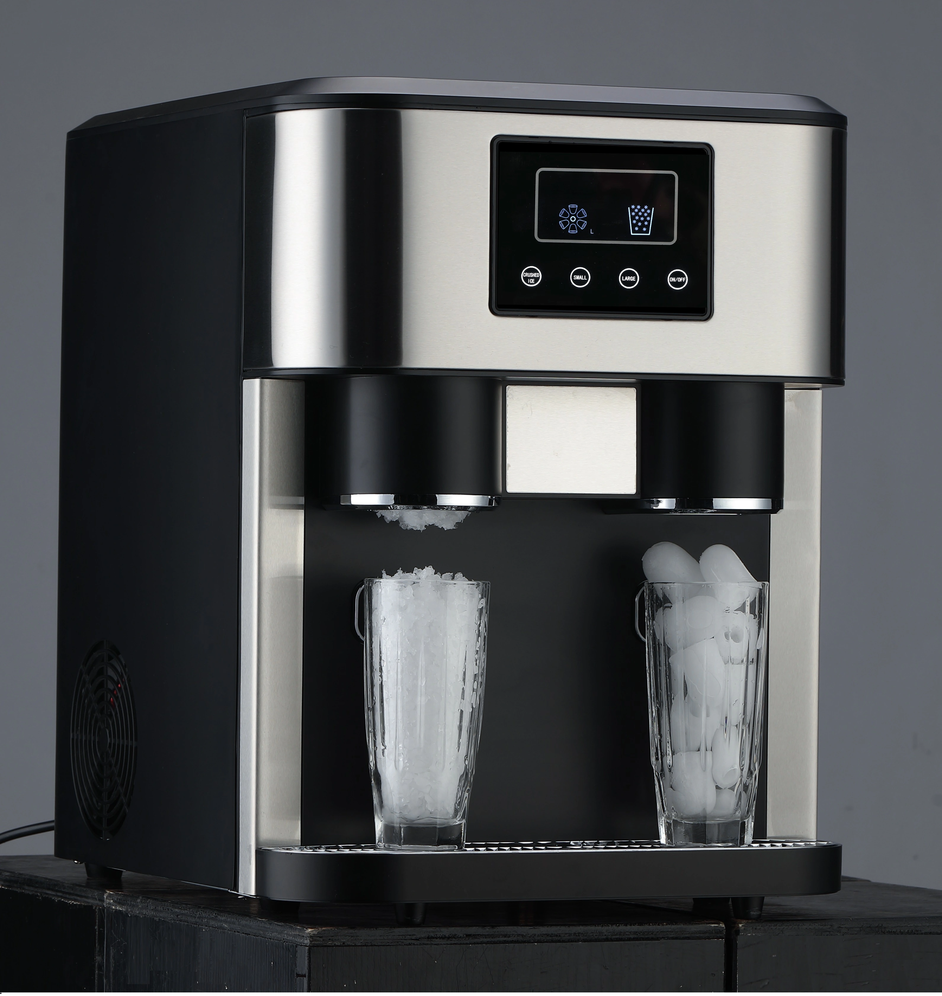 Льдогенератор т.м. EKSI серии EBSD, мод. EBSD 18, с измельчителем льда, диспенсером для льда и диспенсером для воды, 340х450х453мм, 150Вт, 220В, производительность 15-18 кг/сутки, объем бункера 0,6 кг., объем емкости для воды 1,8 л, тип льда: пальчиковый и дробленый, тип подачи воды: заливной или автоматический, тип охлаждения: воздушный, R600a.