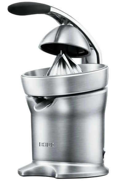 Соковыжималка для цитрусовых электрическая бытовая т.м. BORK, модель Z800, 180х230х450мм, 100-120Вт, 1 скорость, длина электр. кабеля -1,05 м, материал корпуса - нерж. сталь, 220В, вес 8,61кг, скорость вращения 60 об/мин, тип соковыжимателя - пресс, число фильтров - 2 шт, время работы - без ограничений, плавный запуск двигателя, есть защита от перегрузки.