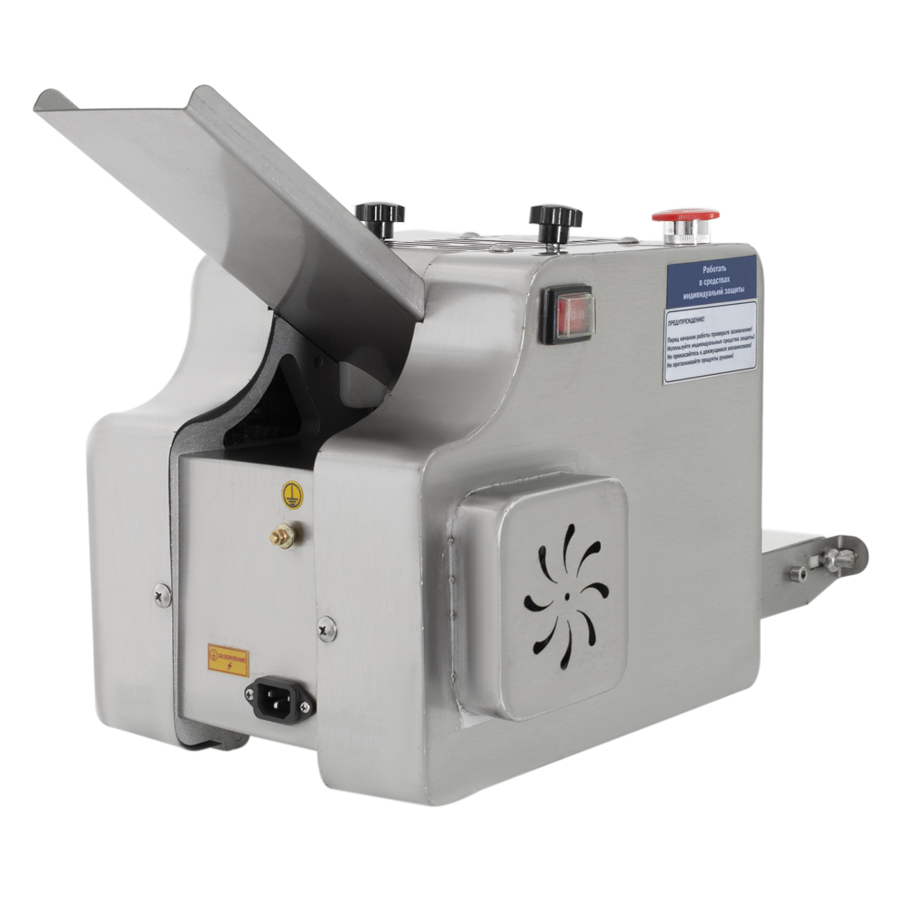 Основу конструкции аппарата составляет ряд вертикальных валков, через которые последовательно проходит тесто. В верхней части корпуса находятся регулировочные винты для изменения расстояния между валками. С их помощью можно регулировать толщину заготовок.