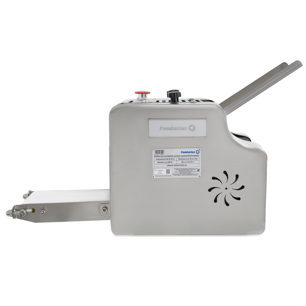 Машина для изготовления тестовых кружков DS-75 Foodatlas станет отличным решением для любого пельменного цеха. Аппарат раскатывает тесто и нарезает его на равные части (кружочки), которые используются в качестве заготовок для пельменей и вареников ручной лепки. Оборудование позволяет облегчить человеческий труд, ускорить работу на кухне и повысить производительность предприятия.