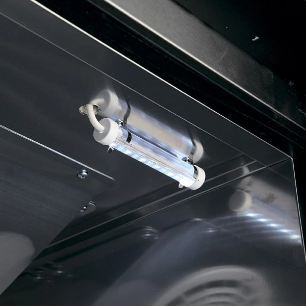 - Колёса 4” со стопорами - Замок – Магнитные дверные уплотнители – Стальные полки с виниловым покрытием – Электронный контроллер