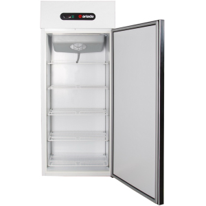 Шкаф холодильный среднетемпературный, серии Ария, с 1 глухой дверью, замком, 4 полками, светодиодной внутренней подсветкой, термостатом, нижним агрегатом, изготавливается из стали с белым полимерным покрытием. Полный объём - 575л. Рабочая температура: от -5 до +5С (при температуре окружающей среды до +40°С и относительной влажности воздуха до 80%). Полки выдерживают распределенную нагрузку до 50кг. Толщина стенки корпуса - 55мм. Хладагент - R404A. Шкаф оснащен динамической холодильной системой, системой автоматической оттайки. Корпус цельнозаливной пенополиуретаном без щелей и стыков гарантирует надежную термоизоляцию охлаждаемого пространства, механическую прочность и долговечность шкафа.