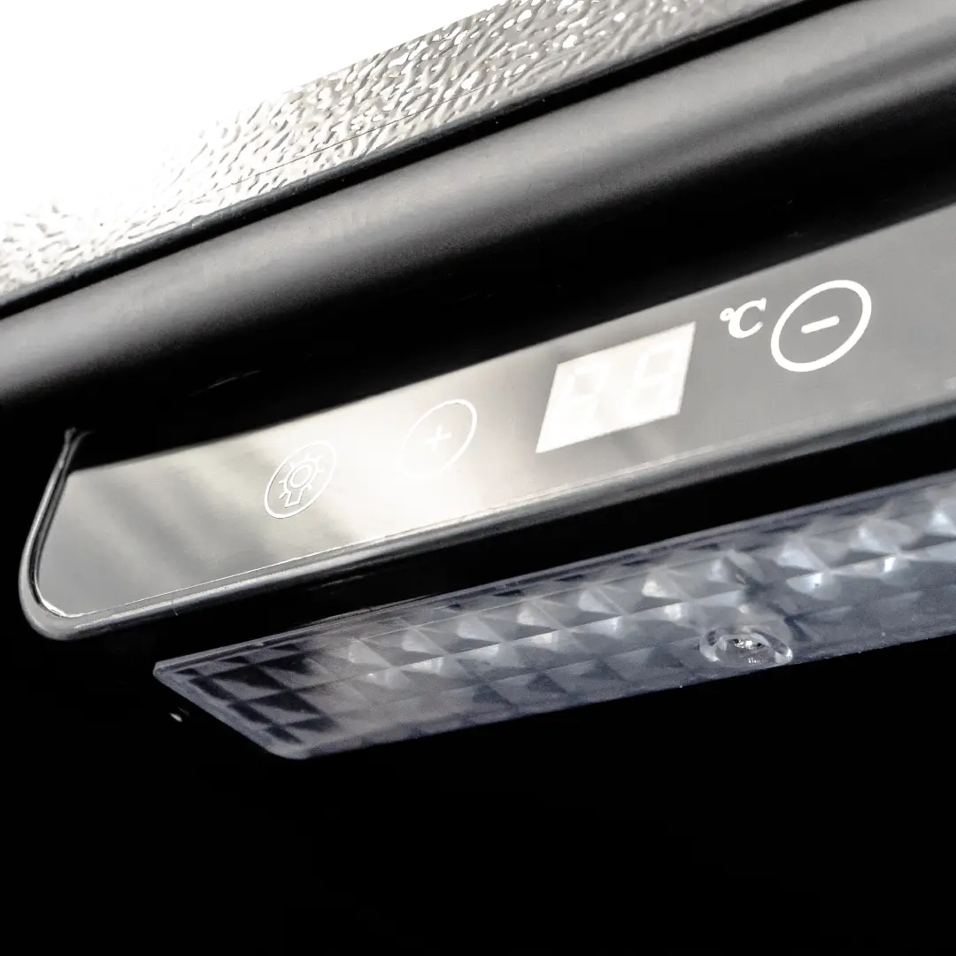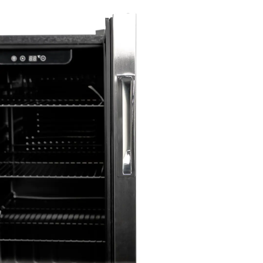Холодильник барный т.м. EKSI серии BRG, мод. BRG90, 445*485*792мм, 80Вт, 220В, R600a, +4…+16°C, 3 полки, объем 96 литров, электронная панель