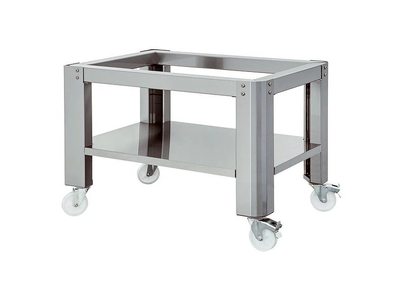Стенд для печи для пиццы т.м. WLBake серии WellPizza, мод. Rapido 20, 600x865x632 мм, изготовлен из нержавеющей стали, оснащен колесами со стопором для удобства перемещения, позволяет устанавливать до 2 конвейерных печей в колонну