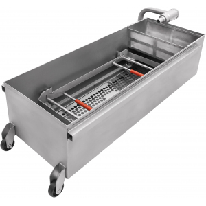 Фритюрница электрическая с системой фильтрации масла на закрытом стенде с одной ванной объёмом 25л. В комплекте две корзины из нержавеющей стали. В комплекте с фритюрницей поставляются 10 фильтров.