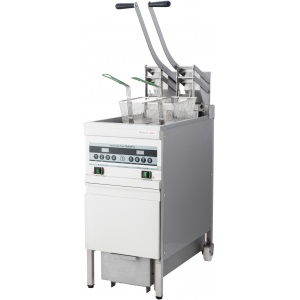 Лимитированная серия! Фритюрница электрическая с системой фильтрации масла на закрытом стенде с одной ванной объёмом 25л. В комплекте две корзины из нержавеющей стали. В комплекте с фритюрницей поставляются 100 фильтров.