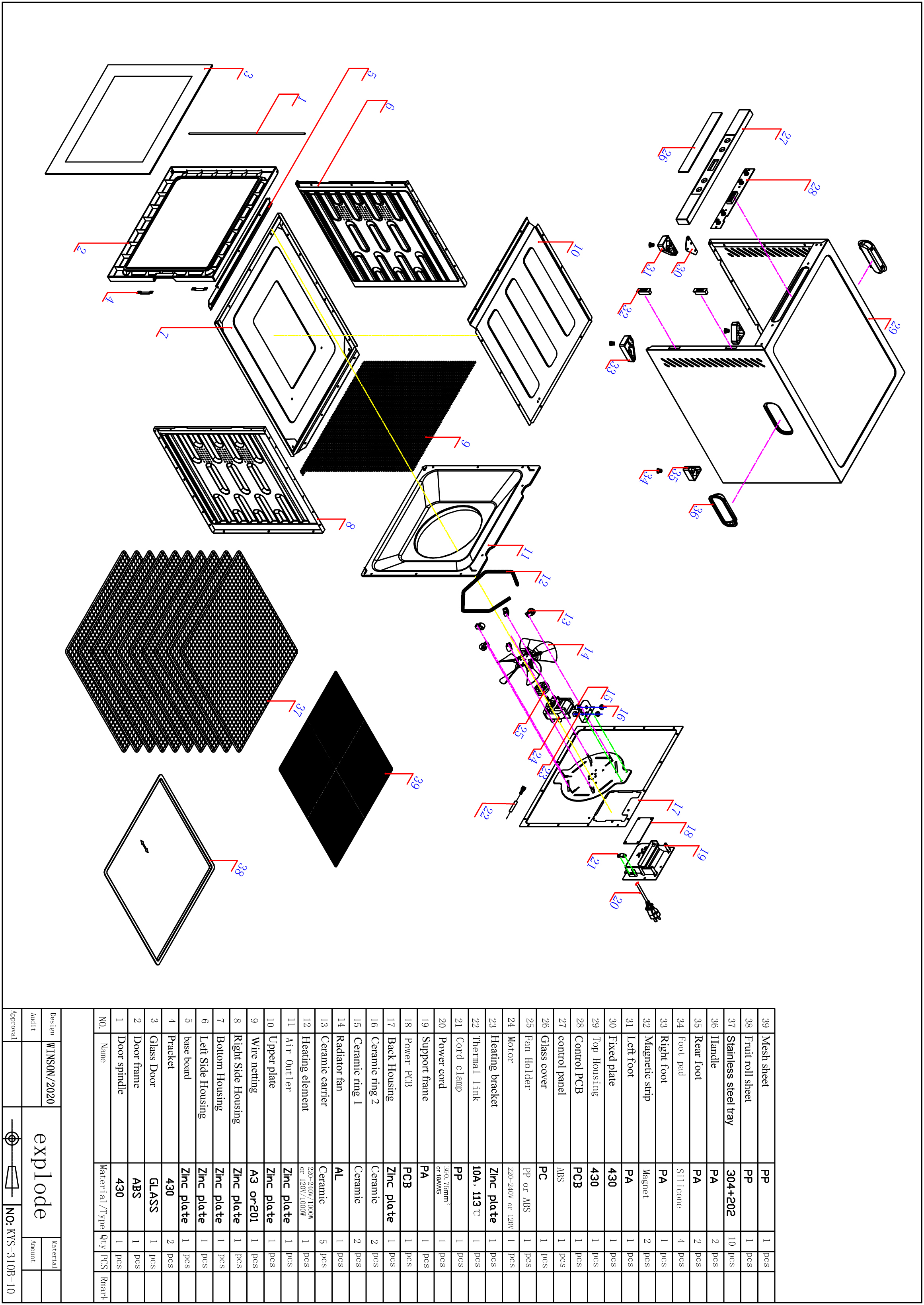 В комплект поставки дегидратора сушилки входят 10 съёмных полок-решёток 395x380 мм из нержавеющей стали + 1 решетка с мелкой ячейкой, + 1 пластиковый поддон для пастилы
