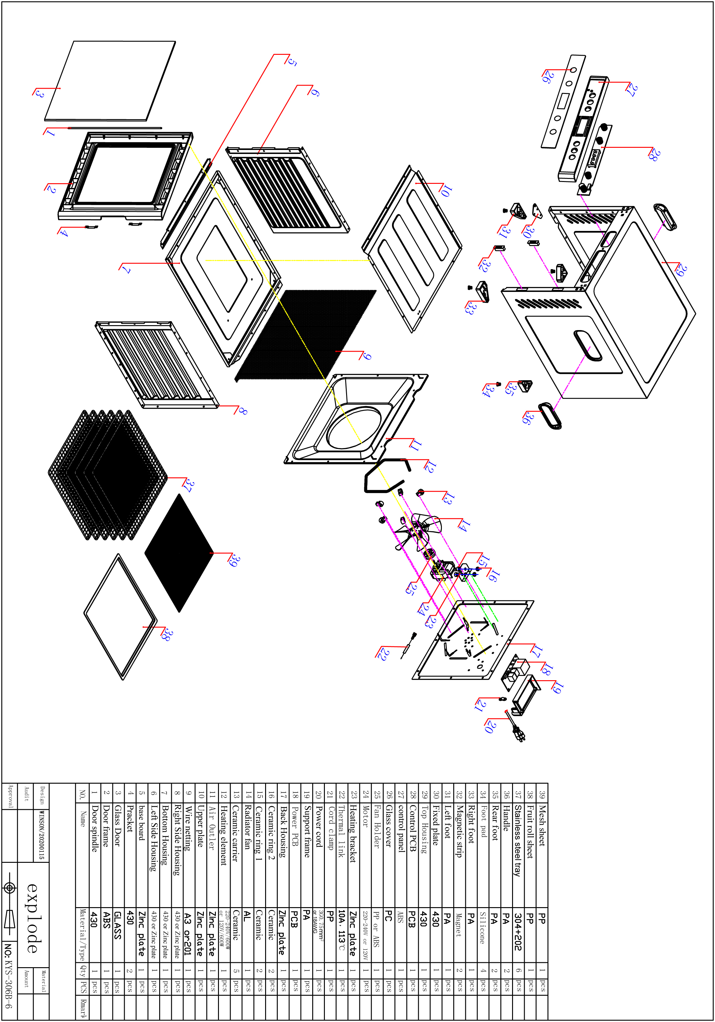 В комплект поставки дегидратора сушилки входят 6 съёмных полок-решёток 305х330 мм из нержавеющей стали, +1 решетка с мелкой ячейкой, +1 пластиковый поддон для пастилы