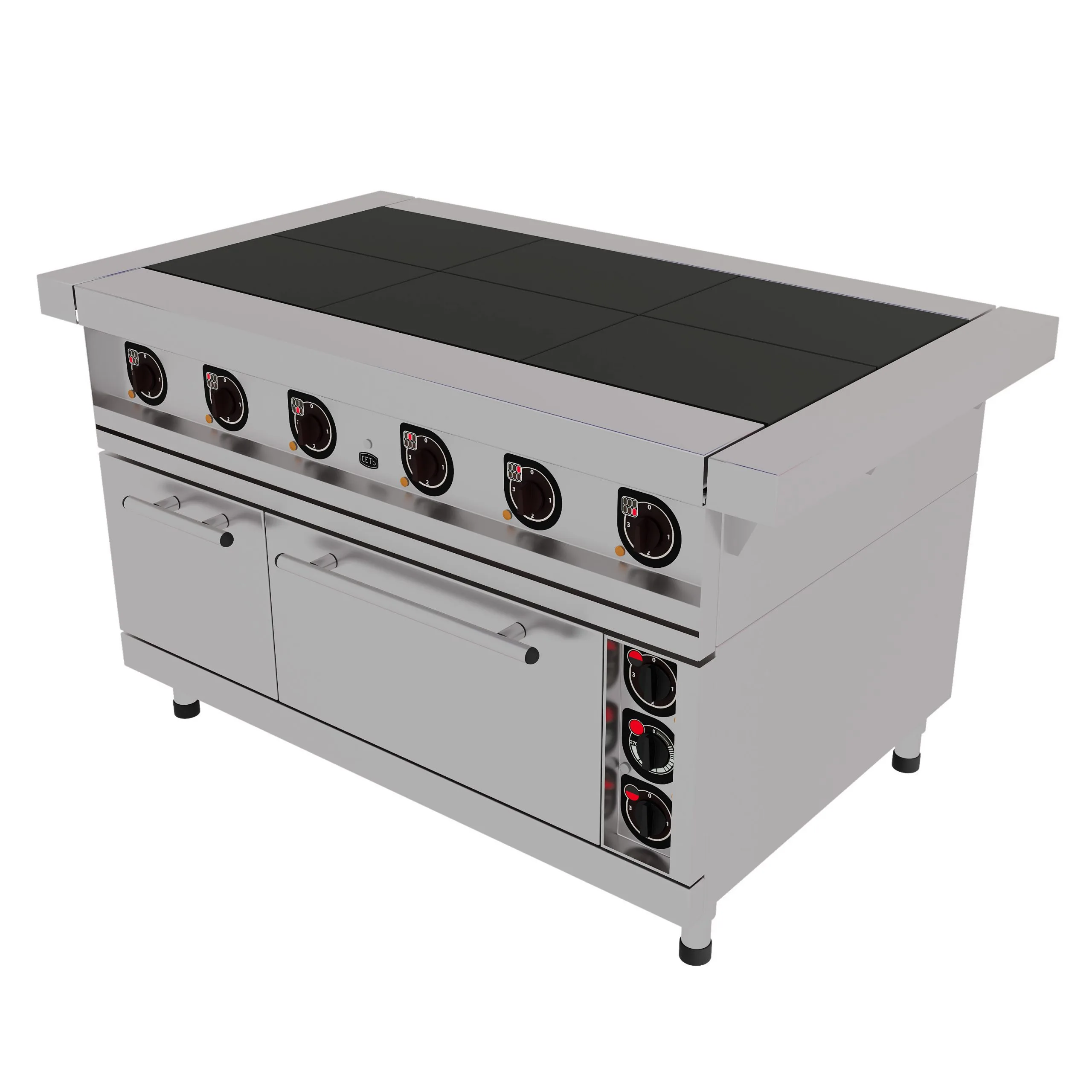 Gabino Плита электрическая мод. S6F. 6 конфорок - чугун. лицевая поверхность нержавеющая боковая и задняя нержавеющая, духовой шкаф углеродистый, 22,8 кВт, 400В, 1475х895х860