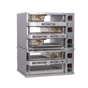 Мультихолдер с электронной регулировкой температуры, настольный, сухого типа, сквозного исполнения оснащен 3 отсеками для 2хGN1/3-65мм каждый (общая вместимость 6хGN1/3-65мм), расположенными в 3 ряда и 1 колонку. Гастроёмкости в комплект не входят. Шесть таймеров. Рекомендованые гастроемкости 125207 (с двумя ручками https://www.trapeza.ru/goods/125207/) или 125208 (с одной ручкой https://www.trapeza.ru/goods/125208/).