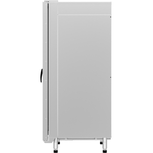 Пароконвектомат электрический бойлерный с программируемым сенсорным управлением, душем, встроенным трёхточечным щупом, вентилятором предназначен для обжаривания, приготовления на пару, бланширования, запекания и других видов тепловой обработки продуктов на предприятиях общественного питания и торговли. Вместимость - 1 тележка на 20GN1/1. В комплект поставки входит шпилька-тележка. Предусмотрены 4 рабочих режима: конвекция до +270°С, пар до +100°С, конвекция+пар до +250°С, Дельта Т; и 7 режимов мойки: автоматическая мойка (3 режима) с применением режима “Пар” + специальные таблетки, автоматическая мойка (3 режима) с применением режима “Пар” + жидкие моющие средства, режим ополаскивания. Модель имеет память на 1120 программ приготовления (120 собственных + 1000 возможность записи) до 9 этапов приготовления в каждой, таймер от 1мин до 10мин, регулировку влажности от 0 до 100% (5 шагов), реверс+5 скоростей вентилятора, контроль температуры конденсата, сливаемого в канализацию; систему самодиагностики, регулируемые по высоте ножки. Через USB разъем можно обновлять программы электронной панели. Тройной стеклопакет дверцы обеспецивает снижение потерь тепла, наименьший нагрев внешних поверхностей. Дверной механизм имеет двухходовой замок для безопасности персонала от воздействия горячим паром. Степень защиты камеры IPX5. Максимальная температура отработанной воды, сливаемой в канализацию: +70°С. Максимальная нагрузка на гастроемкость - 4кг. Давление воды в системе водоснабжения: от 200 до 600 кПа. Максимальный уровень звуковой мощности - 65 дБА. Корпус выполнен из шлифованной нержавеющей стали; детали, подвергаемые санитарной очистке - из нержавеющей стали AISI 304.