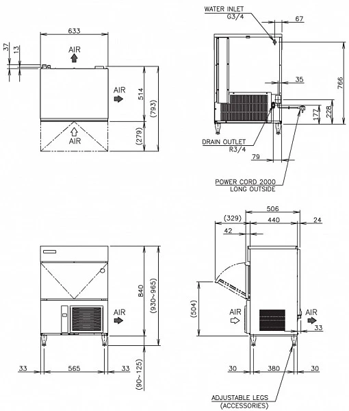 - Суточная производительность при 10Amb./10 Water – 56 кг; при 21Amb./15 Water – 49 кг; при 32Amb./21 Water – 41 кг