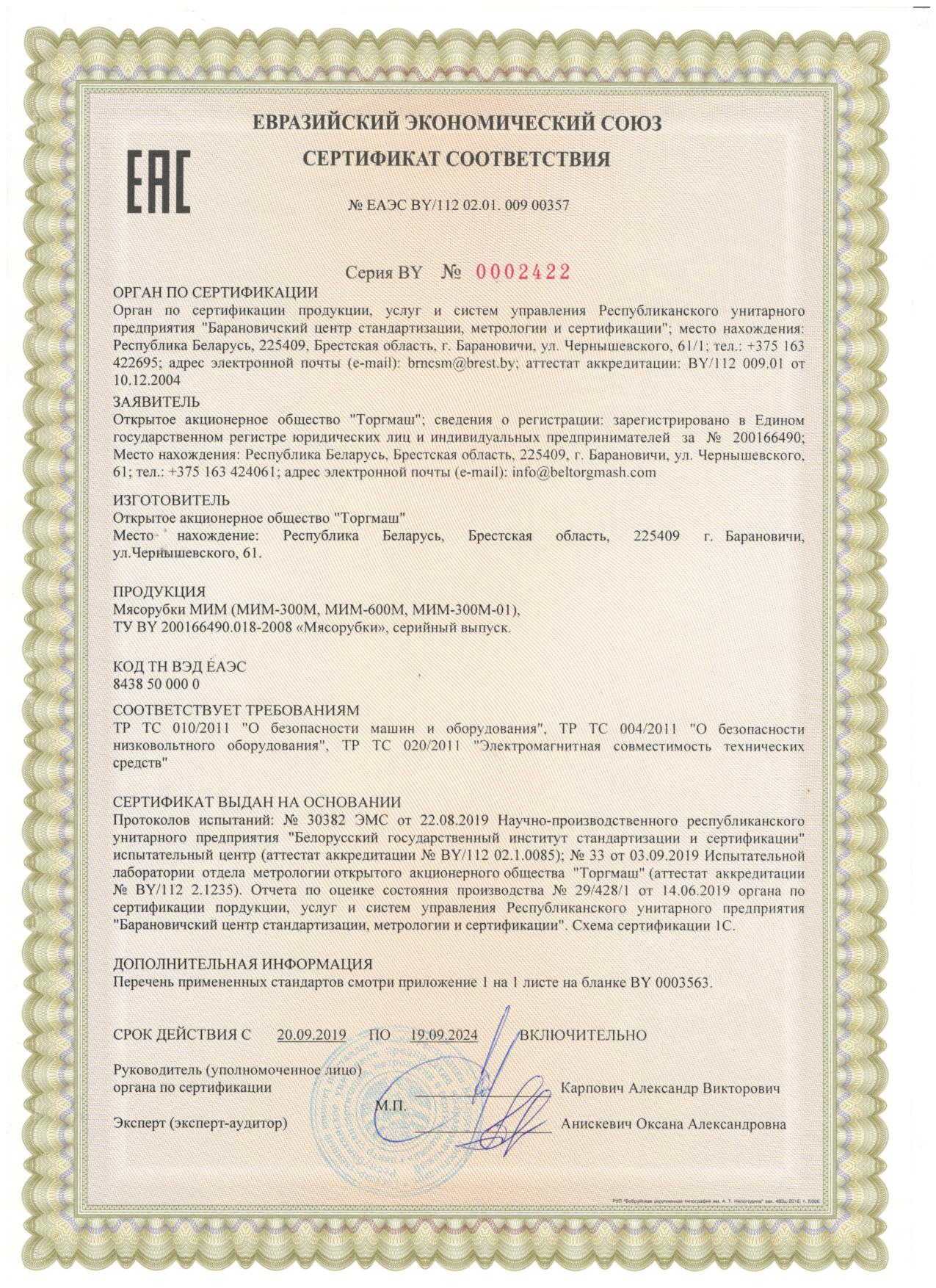 Технические характеристики МЯСОРУБКА МИМ-600М