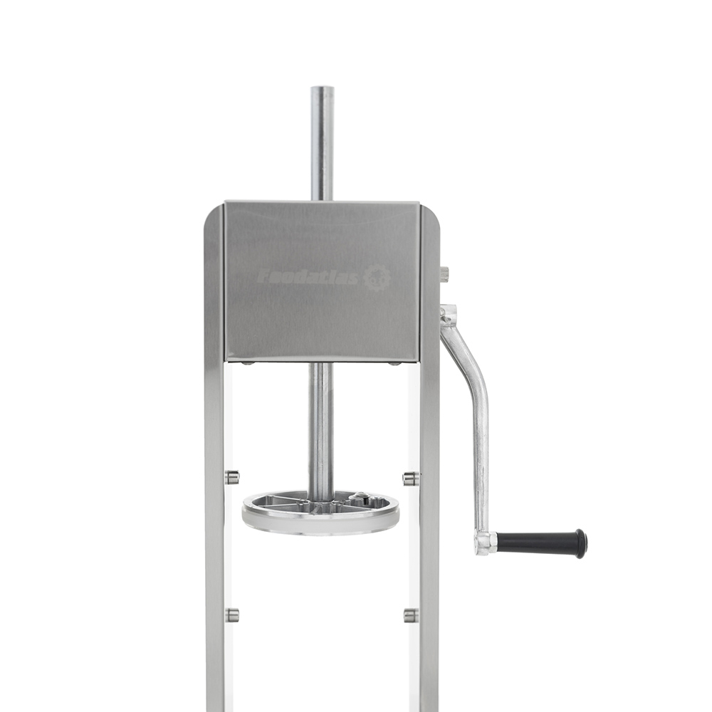 Для производства колбас и полуфабрикатов целесообразно использовать шприц колбасный вертикальный HR-5L Foodatlas. Устройство подходит для эксплуатации в цехах по производству продуктов питания, мясных изделий колбасной продукции, а также торговых точках, предлагающих собственные продукты.
