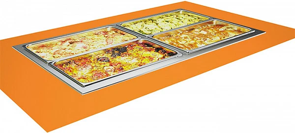 Мармит вторых блюд водяной, дисковый ТЭН мощность 4кВт, регулятор температуры, ванна из нержавеющей стали марки AISI 304 толщиной 1мм, вместимость пять GN1/1. Без полки. Без гастроемкостей, гастроемкости приобретаются отдельно. Поставляется в собранном виде. Скрытый монтаж.